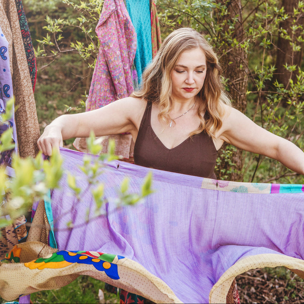Our skirts are created by talented fair-trade artisans in India, whose craftsmanship brings each piece to life. Every skirt carries the beauty of traditional textile artistry while helping extend the life of existing fabrics.